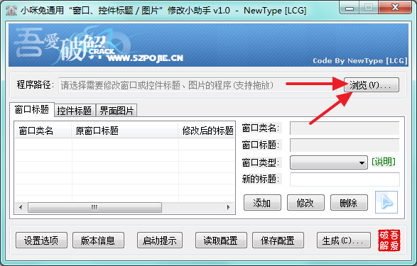 1、本程序修改“窗口标题、控件标题、界面图片”的实现方式为动态修改(即只是临时修改窗口标题、控件标题、界面图片,并未对目标软件进行任何静态方式的修改);