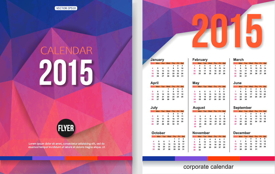 2015炫彩日历模板,2015年新年挂历,时尚背景,几何拼接背景,eps文件免费下载.。