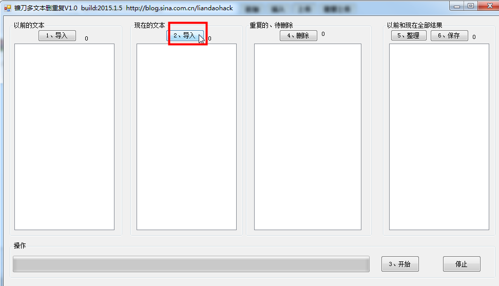 对于广大的文字工作者来说,总会要处理大量的文字信息,如果遇到文字重复就会很头疼的。不过现在有了镰刀多文本删重复软件2015,就能够通过导入的文本,进行快速的对比,找出重复的地方,从而一键删除,让大家在碰到这样的问题就不会烦恼了!