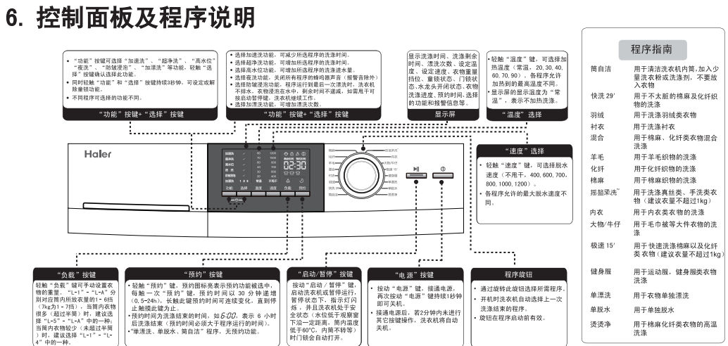 海尔XQG50-BS708A洗衣机使用说明书pdf免费下载