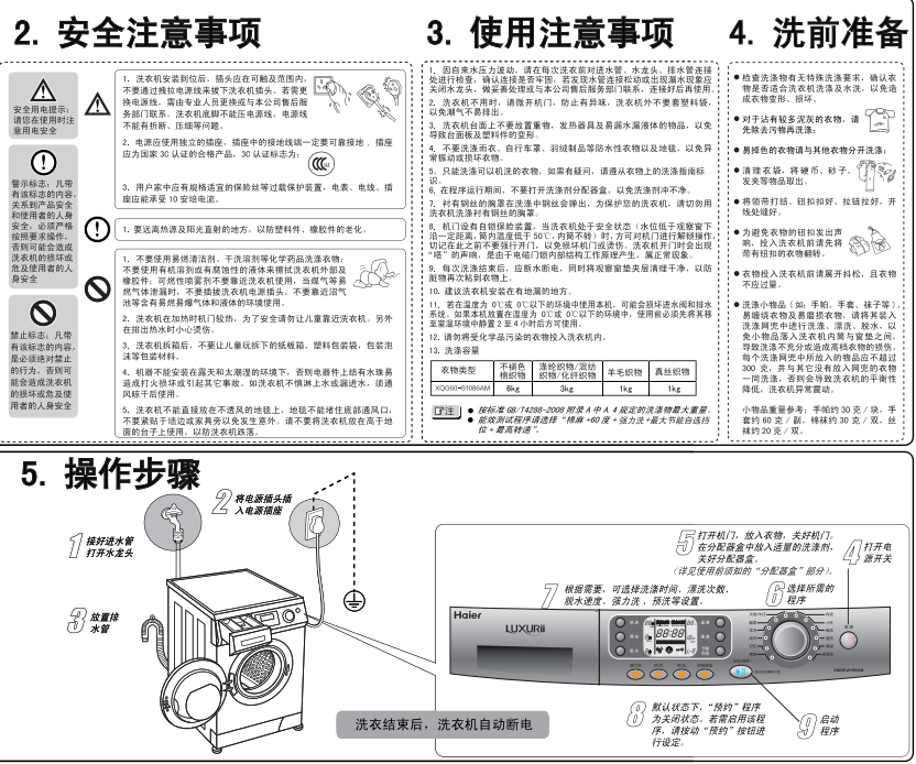 海尔洗衣机xqg60s1086am怎么操作?这里给大家分享的是海尔洗衣机xqg60 s1086 am使用说明书,需要的朋友可以免费下载海尔XQG60-S1086 AM说明书。