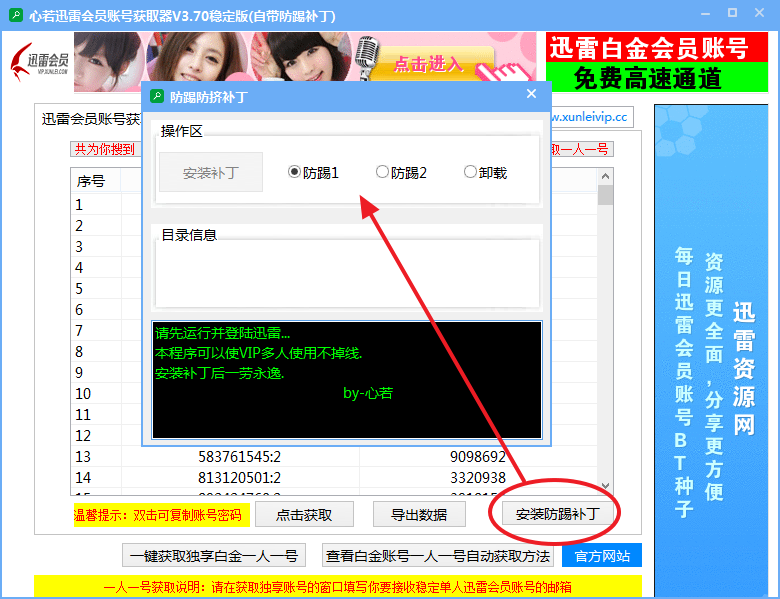 心若迅雷会员账号获取器使用方法