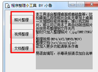 对于那些经常依靠电脑工作的小伙伴来说,总会有程序不正常摆放的情况,那么这时就可以用小鲁程序整理小工具2015,通过它的一键整理功能,就能帮助你实现照片、视频、文档的有效的管理,想要电脑整洁的,都可以进行下载!