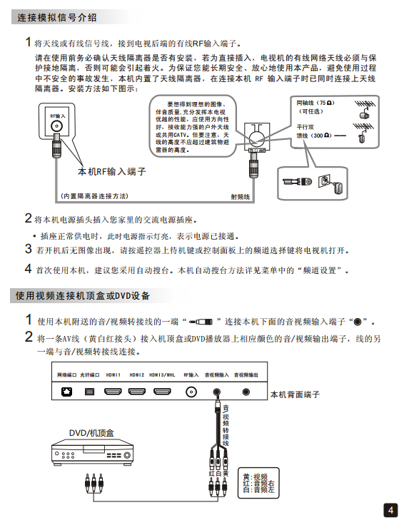 电视基本功能、电视产品特性提示、开机与关机……………………………… 7