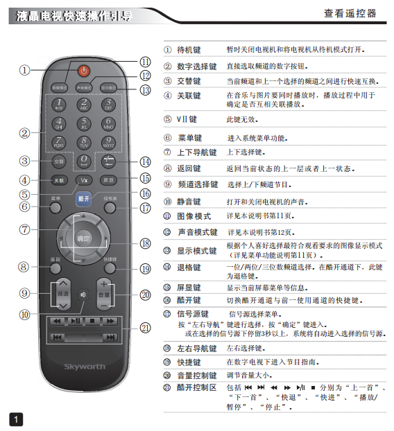 第 一 部 分 : 液 晶 电 视 快 速 操 作 引 导