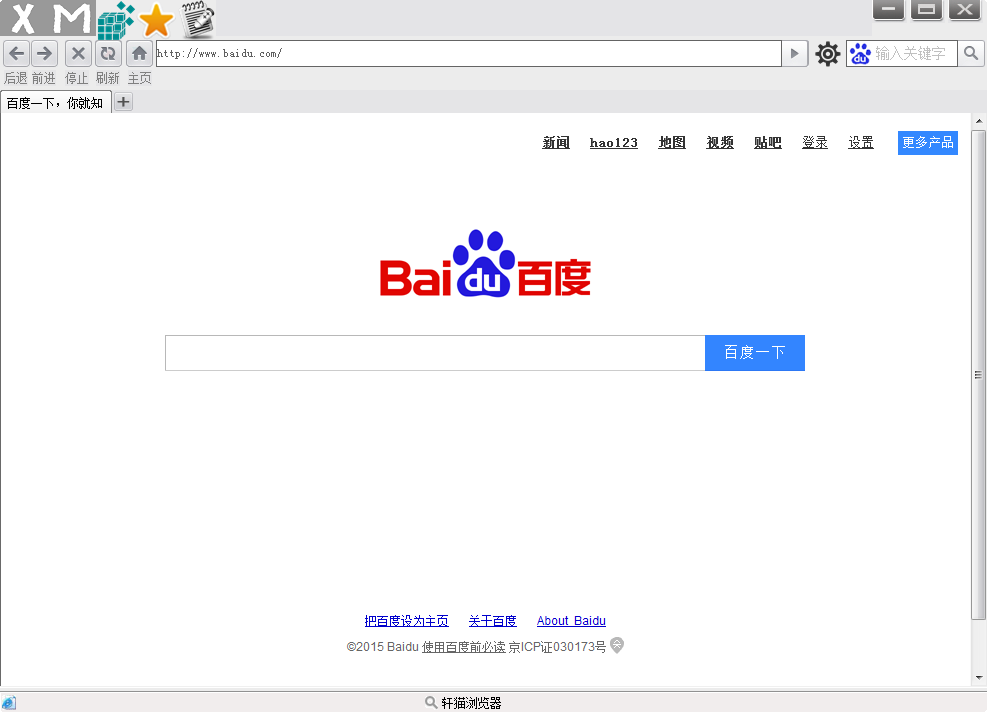 1、打开软件后,默认主页为百度(此页好像不可关闭)
