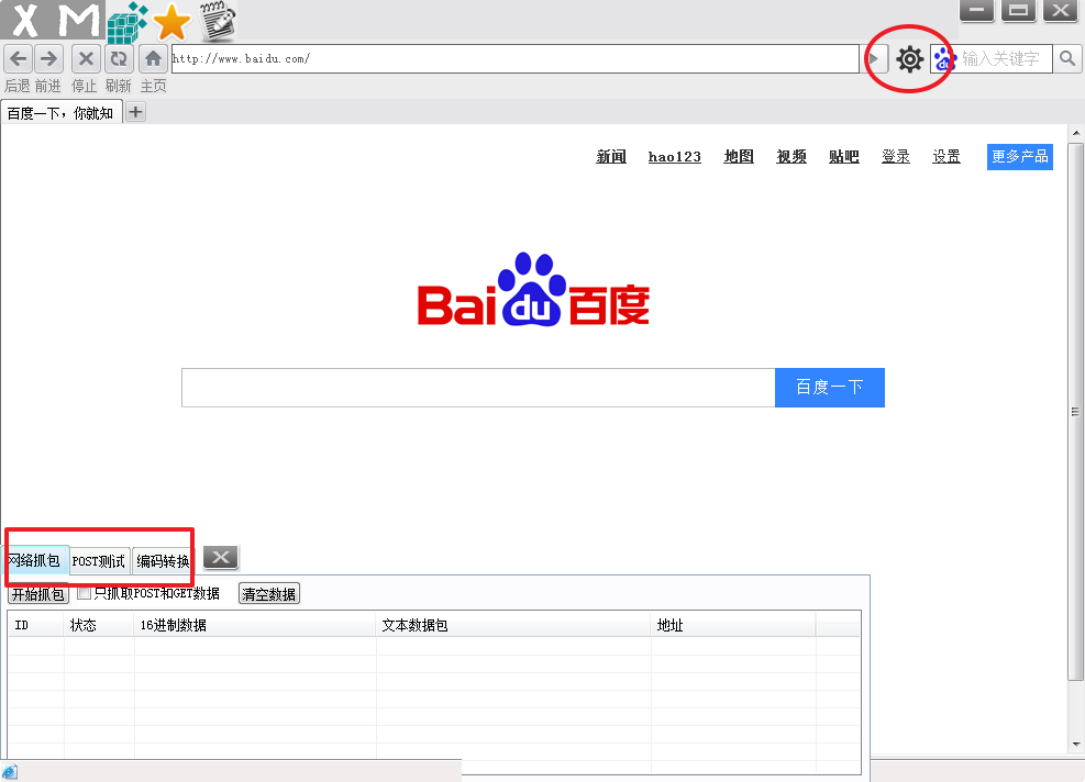 5、点击设置按钮,可进行网络抓包、POST测试、编码转换等操作