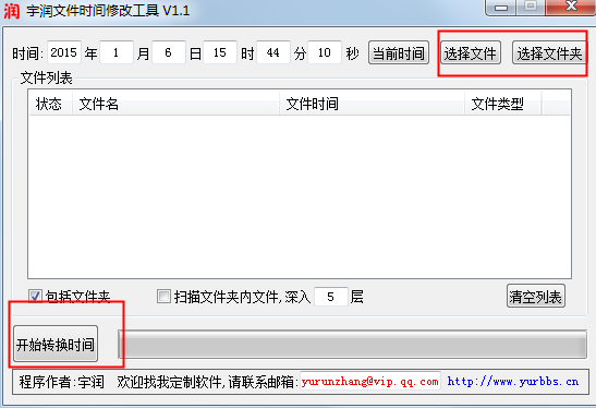 宇润文件时间修改工具(文件时间属性修改器)使用方法