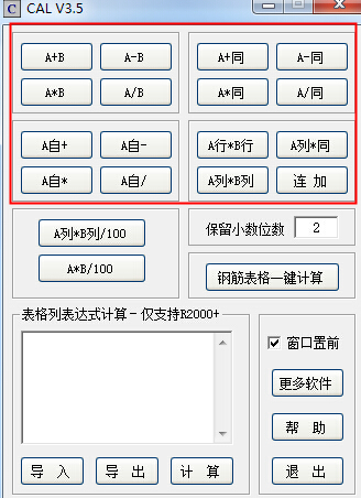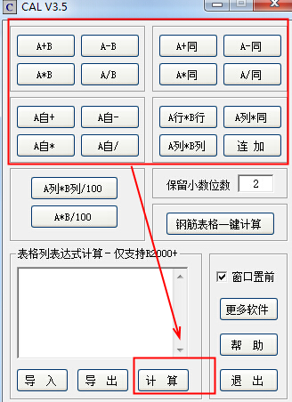 CAD计算器采用基于AutoCAD的VBA编写,能够拾取CAD中的文本进行 批量计算,如行*行、列*列等,支持钢筋表格一键计算:自动根据钢筋直径、单根长度、根数自动计算共长、共重。免费软件,无任何功能和时间上的限制。