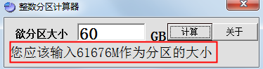 大家分区的时侯都会输入数字,比如你想得到一个2G的分区你也许会输入2000M或者2048M其实你输入的这些数字所分出来的区在Windows下面都不会被认成整数的2G,而是1.9?G,想要得到Windows下的整数G分区,你可以使用这个软件,通过这个软件算出的值就是被Windows认成整数G的值。