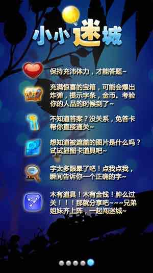 猜图类型的游戏还是在手游上有一些朋友是比较喜欢玩的,那么现在小编就给你介绍下面的这款不错的小小迷城破解版,看看你可以轻松的过几关了!