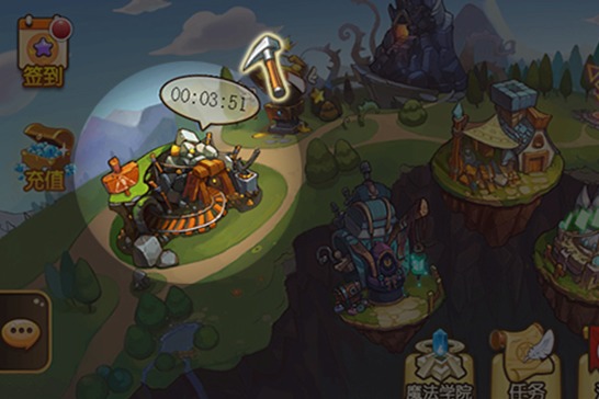 《勇者召唤》的主界面的左边,有一个黄金矿山。那里可以挖出金币甚至钻石。