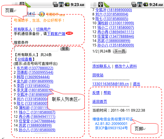用户登录号簿助手WAP门户后,界面如下: