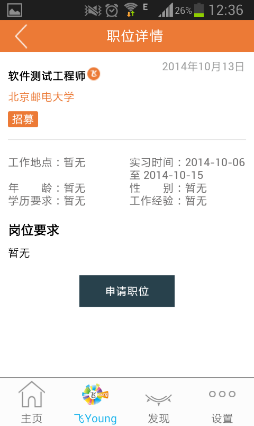 步骤一:完成注册后,点击页面最下端的“飞Young”图标,可看到自己所在院校的招募信息