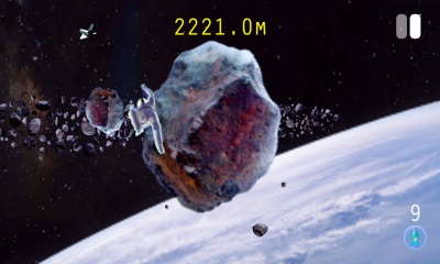 2、游戏开始后,滑动屏幕即可控制宇航员躲避陨石流的冲击
