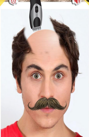 秃头在几秒钟!抓拍照片,并用你的手指作为一个剃刀剃秃自己!
