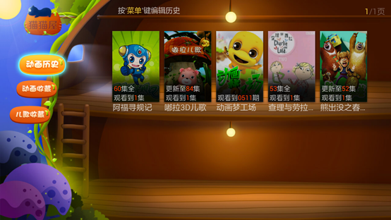 观看历史、节目收藏都在这。孩子今天看不完,明天可以接着看。