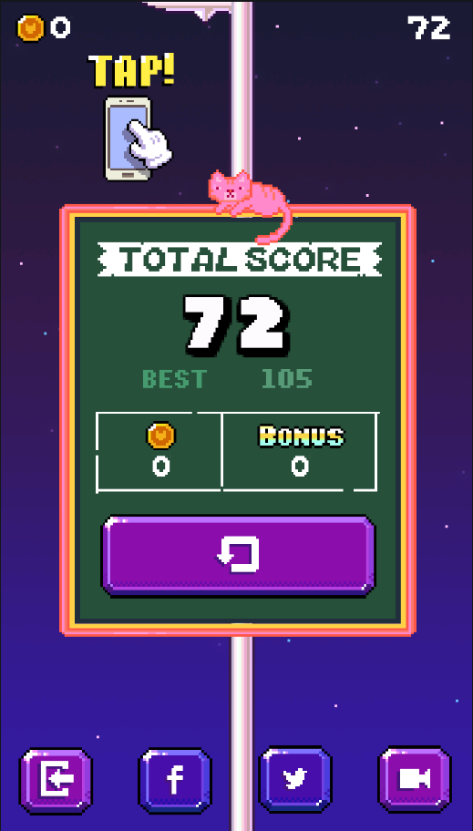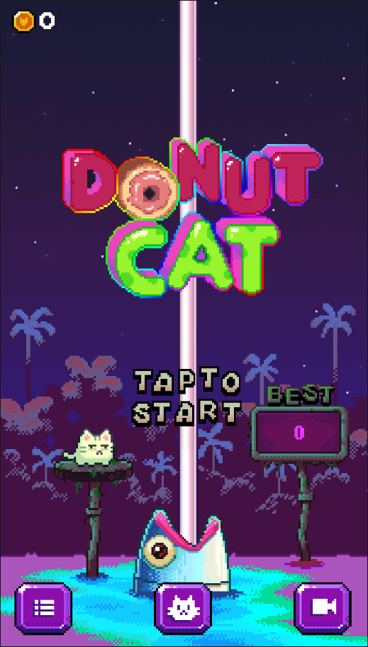 甜甜圈猫(DonutCat)是一款像素风的无尽奔跑类的游戏,玩家追逐着长腿的甜甜圈越过障碍来收集金币,看看你能获得多少分吧。