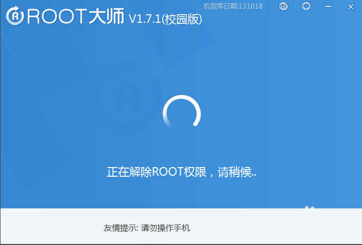 看图:当你的手机连上电脑后,ROOT大师识别该机已获取了ROOT权限,下方会有解除ROOT的按钮,点一下