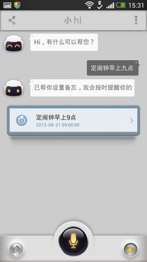 语音机器人,语音助手现在有很多版本的,东坡小编带来的小hi是HTC One专为中国用户定制的语音机器人,它无所不知有问必答,还可用来订机票,订房间等等功能非常强大,有兴趣的不妨来调戏下!