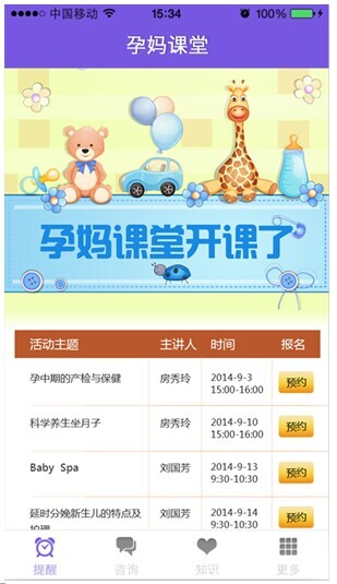 5、“孕妈课堂”功能:幸福孕妈还与各地区医疗机构合作,为孕妈妈提供精彩贴心的专家讲座、网络课堂视频以及各类互动活动,在愉悦孕妈心情的同时,收获更多孕期知识。