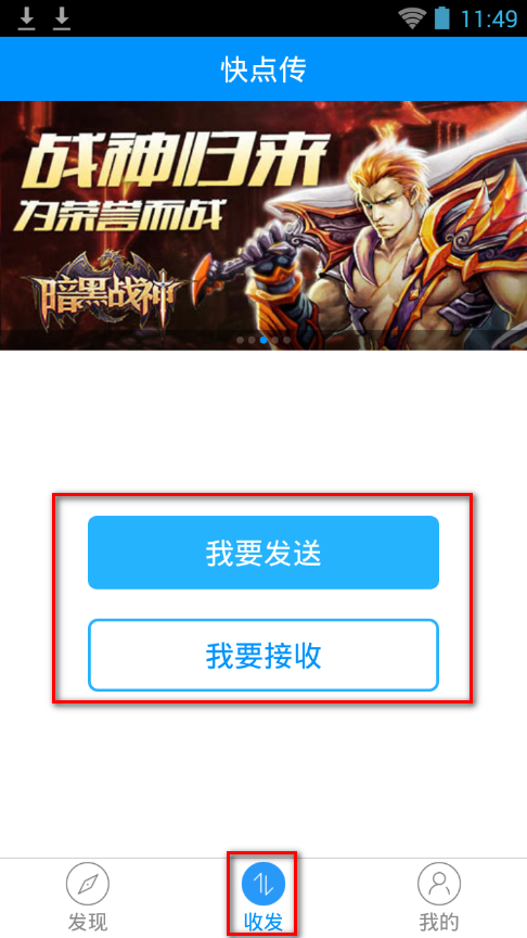 1、下载软件后,点开“收发”选择“我要发送”或“我要接收”