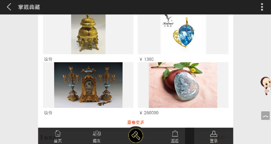 是一款古玩古董艺术品收藏交易平台,这里有全国近百名知名行内专家、资深藏友、德高望重前辈组成庞大的鉴赏团,为初级门客或拿不准的藏友提供在线免费掌眼,保驾护航,是所有收藏爱好者的随身必备工具哦。