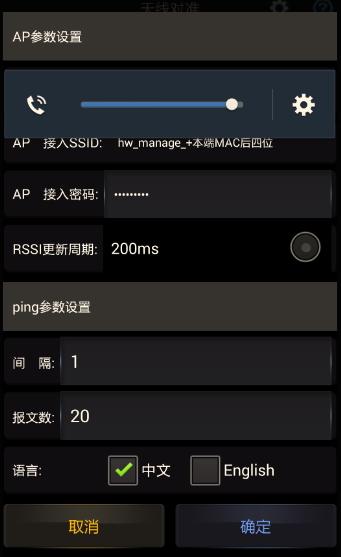 注意:设置页面可修改一些语言、RSSI更新周期等参数,常用场景下默认即可,不需要更改。