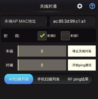 (4)关联以后,点击开始天线对准。本端和对端显示信号强度,并且会记录下扫描的RSSI最大值(亮度条右面的白色竖线),调整天线已达到最佳强度值。