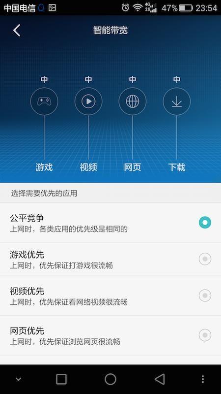 智能宽带功能则是均衡不同上网速率的设置,当然,在网速充足的情况下使用不到的。不过晚上网络高峰期的时候,想要打游戏确实是一件非常困难的事情,好在HiLink功能可以帮你把所有的网速集中在游戏上,终于可以不坑队友了。