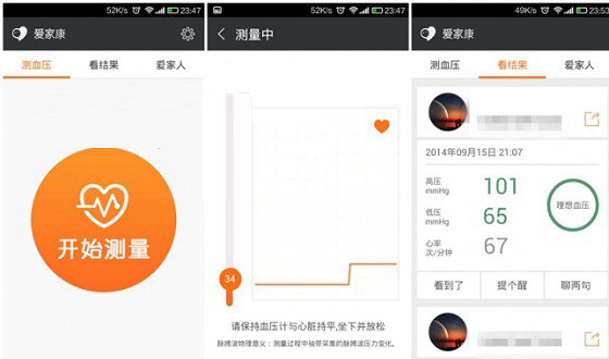 另外,小米iHealth智能云血压计还支持云同步功能,只要小米手机联网,测量结束后,测量结果会自动同步到云端,可以与家人分享您健康测量结果。有了它,再也不用担心妈妈的血压了,如下图所示。