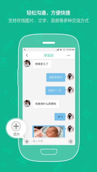 医生可以与患者及时沟通,为他们提供合理的诊断方案,支持在线图片、文字、语音等多种交流方式。