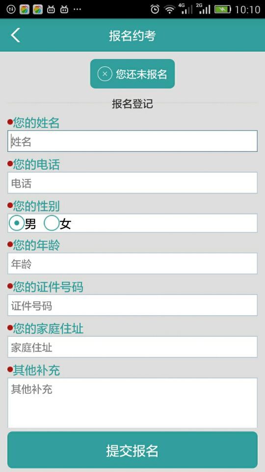 4、要开始学车,当然就要先“报名”,点击【个人中心】--【报名约考】,填写报名资料,客服人员就会联系你,给你说明还需要哪些资料,她们会带领你们一起,完善资料,直到报名完成。