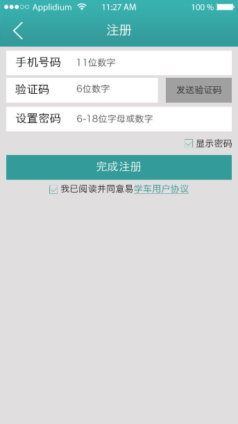 1、打开安装好的软件,如果没有易学车的账号,点击注册,按照提示填写个人信息。只需要手机号就可以注册并登陆,有账号的则可直接登录。