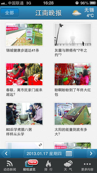 支持报纸日期选择, 无限回溯阅读往日报纸和文章点击排行;