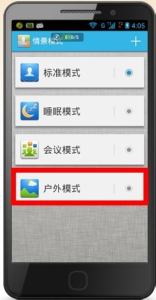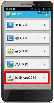 打开情景模式列表,这里一共有四种模式,你可以直接点击选择一种模式