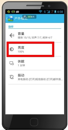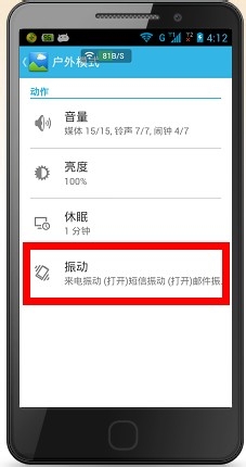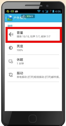 这时打开户外模式,这里有四个动作,我们可以自己进行设置,点击音量
