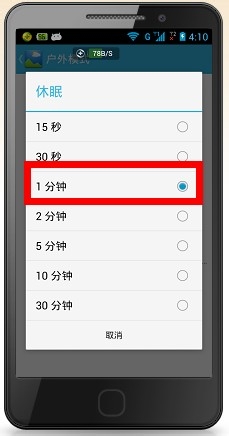 点击休眠,然后直接点击你要让手机休眠的时间即可