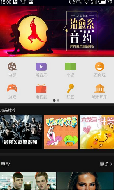 下面是【箩筐】的主界面,可以看电影,听歌,玩游戏等