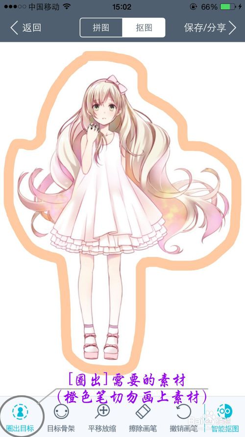 特别注意:橙色笔不能画上素材,橙色笔覆盖部分将不被选出。