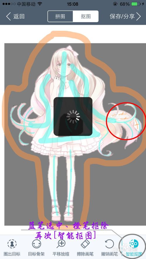 特别注意:可以使用【擦除画笔】细致修理细节;蓝色笔即需抠出部分,橙色笔即不要的部分。