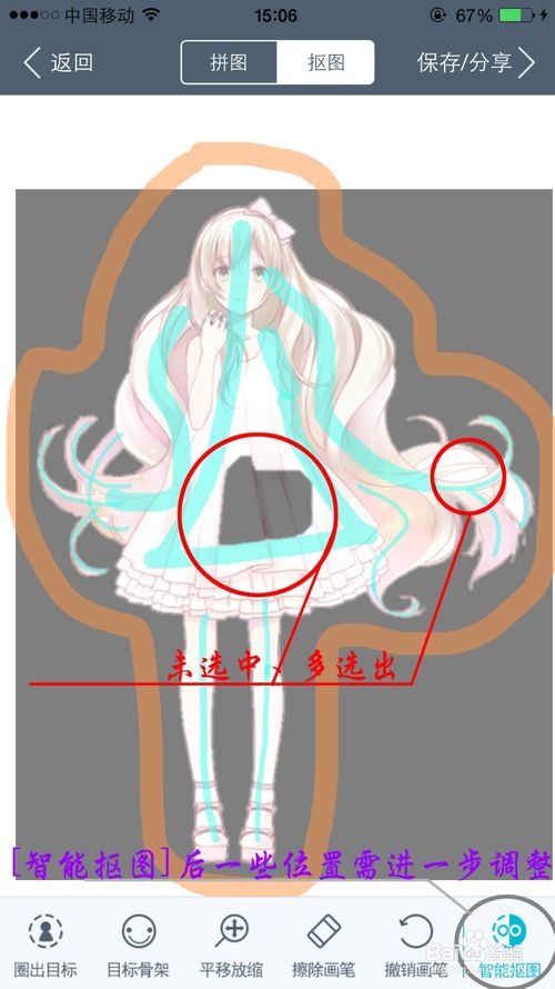 5、点击【智能抠图】后,某些素材部分未能全部抠出。