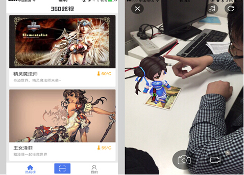 360炫视的首页就是一个热玩榜,各种AR小游戏都在其中,随便选一个游戏,你会发现在玩的过程中还能录像和拍照,玩家瞬间成了奇幻大片的导演,因为虚拟角色可随便调配,甚至地球都能被你托在手中,这才是真正的大片既视感。