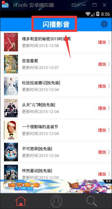 1.下载安装小编提供的闪播影音,连续点击闪播影音四个字,如图: