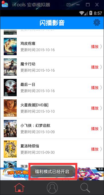 直到出现“福利模式已开启”字样证明已经打开福利库。