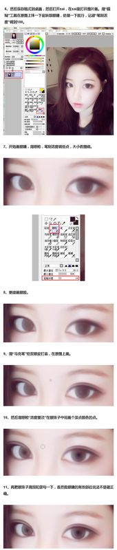 6,接着开始画脸了,用“马克笔”给双眼皮打底,在原图上画。然后用喷枪“浓度要淡”在眼珠子中间画个深点颜色的点。
