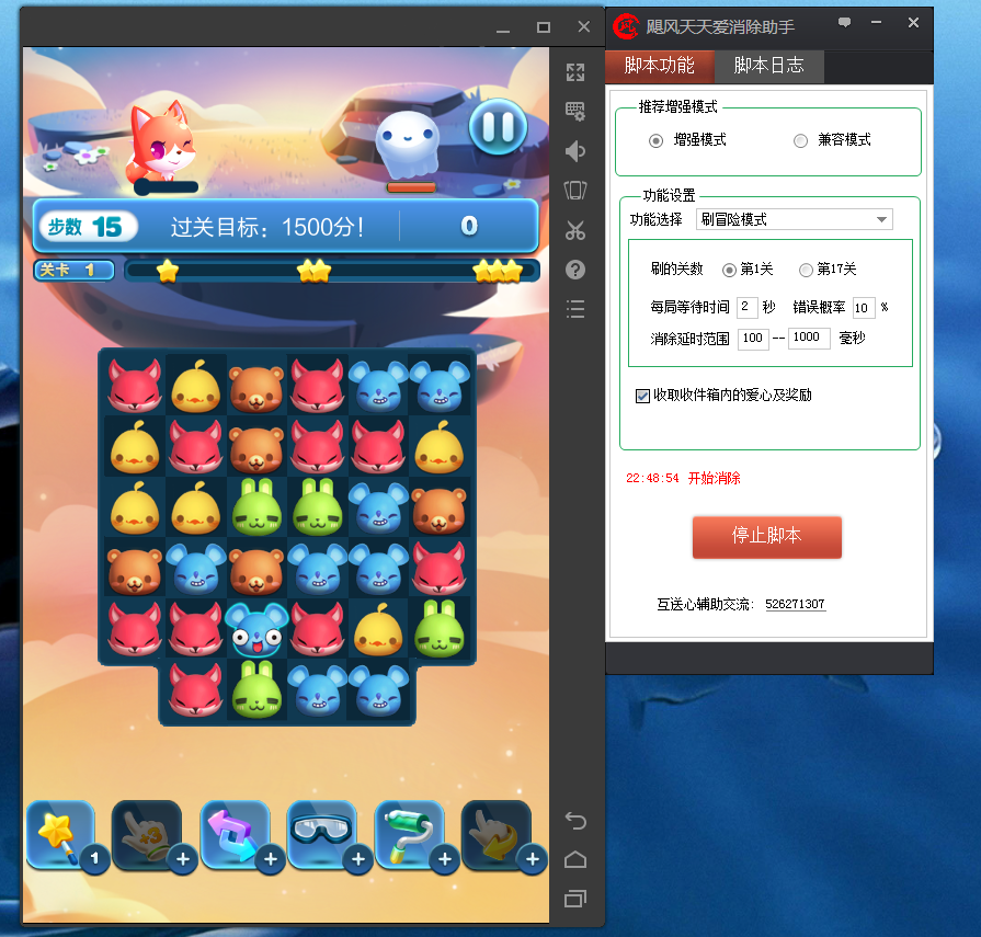 飓风天天爱消除助手是一款电脑端专用的天天爱消除刷分辅助。此辅助完美支持多种模式,智能挂机,还能一键送心,有了此脚本,挂机心都用不完!注意:脚本是exe文件,只能在电脑上运行。有需要的朋友下!