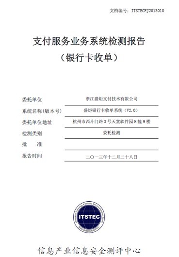 盛炬的支付服务业务系统已通过了信息产业信息安全测评中心的权威检测;