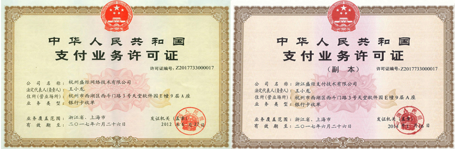 2012年06月27日,盛炬荣获了由中国人民银行颁发的《支付业务许可证》,获得银行卡收单支付业务许可。2013年07月01日,盛炬正式将公司名称由“杭州盛炬网络技术有限公司”变更为“浙江盛炬支付技术有限公司”,并向人民银行递交了变更申请,将《支付业务许可证》 主体公司名称变更为“浙江盛炬支付技术有限公司”。支付牌照的发放有助于加强监管,有利于行业的发展,能够促进整个支付市场的繁荣。盛炬将全力进军第三方支付行业,致力于行业细分市场,为个人及企业提供简单、方便、快捷、安全的综合电子支付产品与服务。