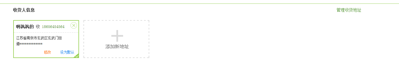 (2)您可以添加新地址信息,保存成功后,再订购时,可以直接选择使用。